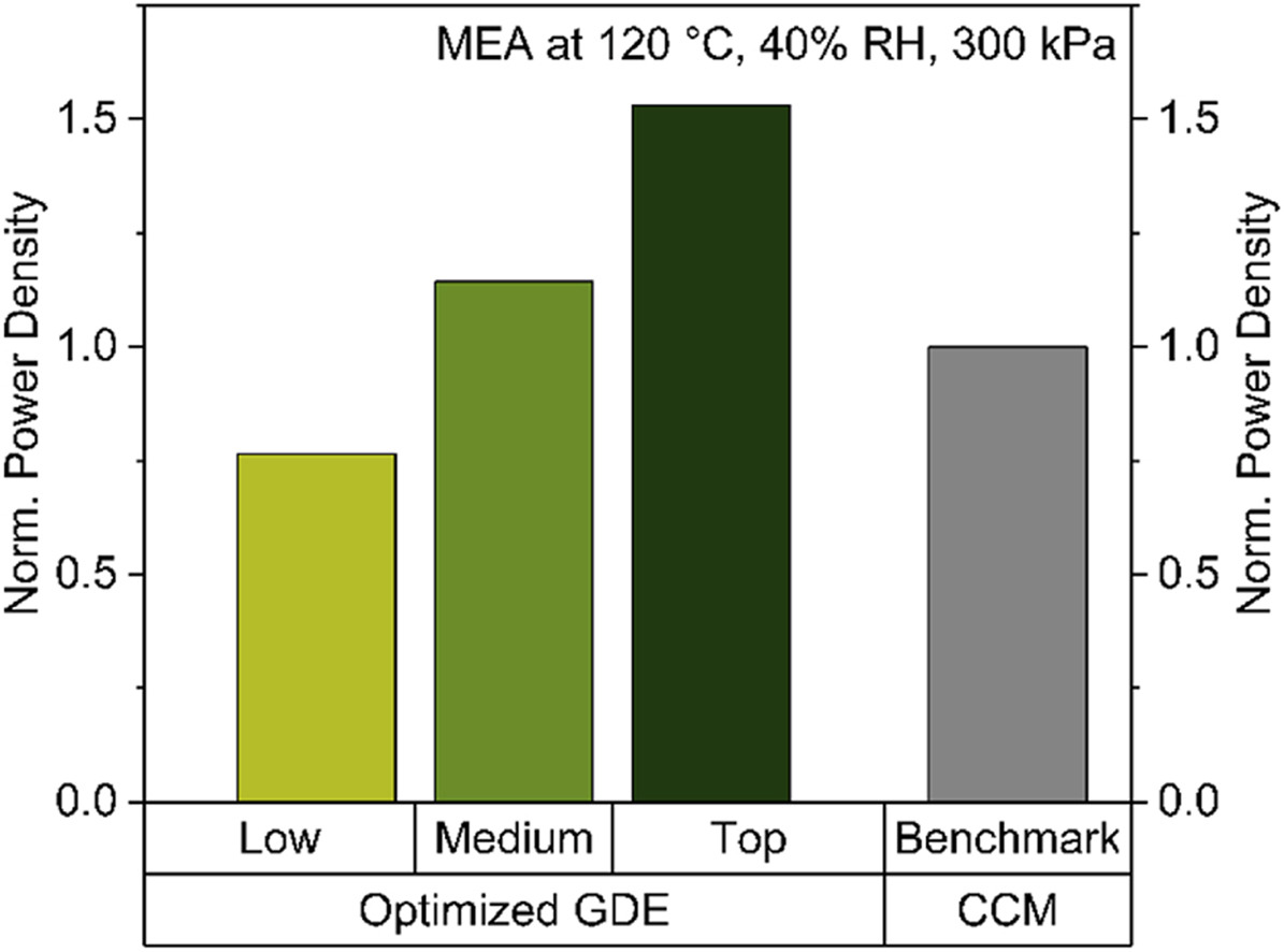 Predicting MEA catalyst layer performance at 120 °C using a pressurized GDE testing platform and machine learning