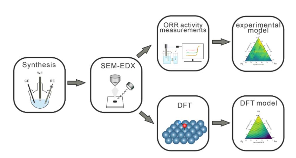 Electrochemical synthesis of high entropy nanoparticles and the exploration of the Pd–Ag–Au composition space for the oxygen reduction reaction